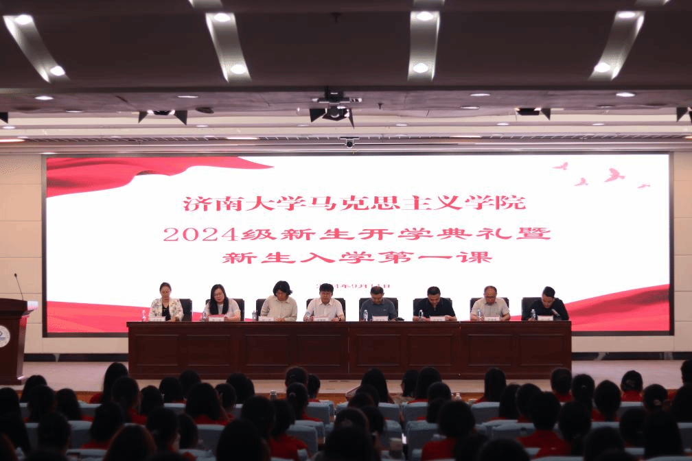 在第一学术报告厅举行学院2024级新生开学典礼暨新生入学第一课。学院党委书记刘颖超,副院长杨立志,院长助理杨燕,正科级组织员孙云飞,学生工作办公室主任陈婧,思政系主任代洪亮,教学管理办公室主任杨星浩,中国近现代史纲要教研部主任、研究生导师赵秀芳,学院教师代表,全体2024级新生班主任以及2024级全体新生参加活动,典礼由学院正科级辅导员赵朔主持。