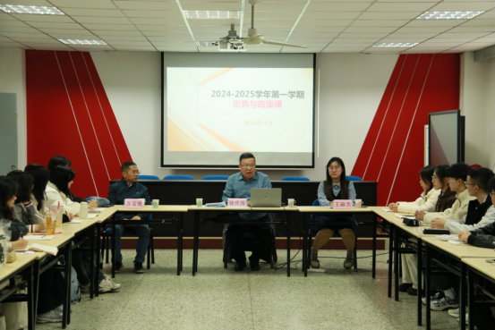 思政2301班的学生讲授形势与政策课,思政2301班班主任苏宝俊,学院辅导员赵朔与同学们一同听课。本次授课还特别邀请到了思想政治教育专业2018级毕业生王淑杰同学进行经验分享。
