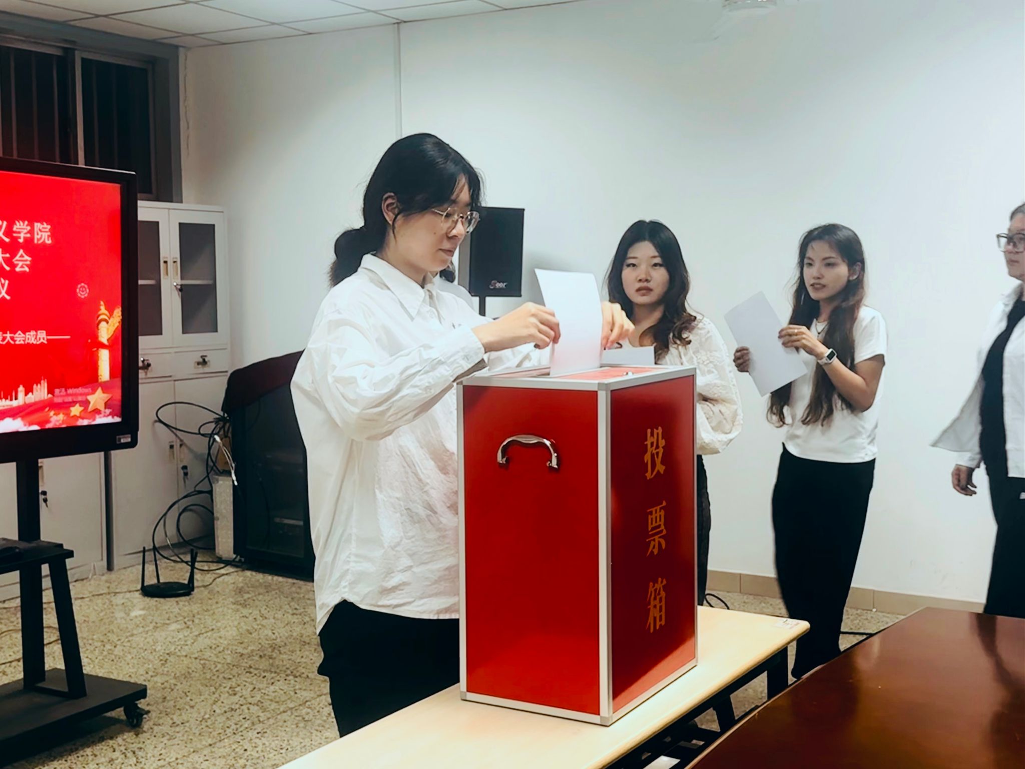 第二届学生会主席团成员廖梓钰向大会作《学生会工作报告》。同时,会议采用无记名投票方式,选举产生学院新一届学生会主席团成员以及出席动漫在线
