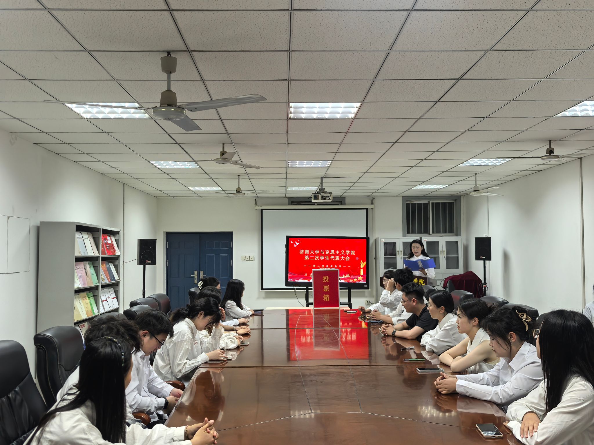 会议室召开,学院学生代表参加会议,学院辅导员赵朔列席会议。会议由学院第二届学生会主席团成员栾欣颖主持。
