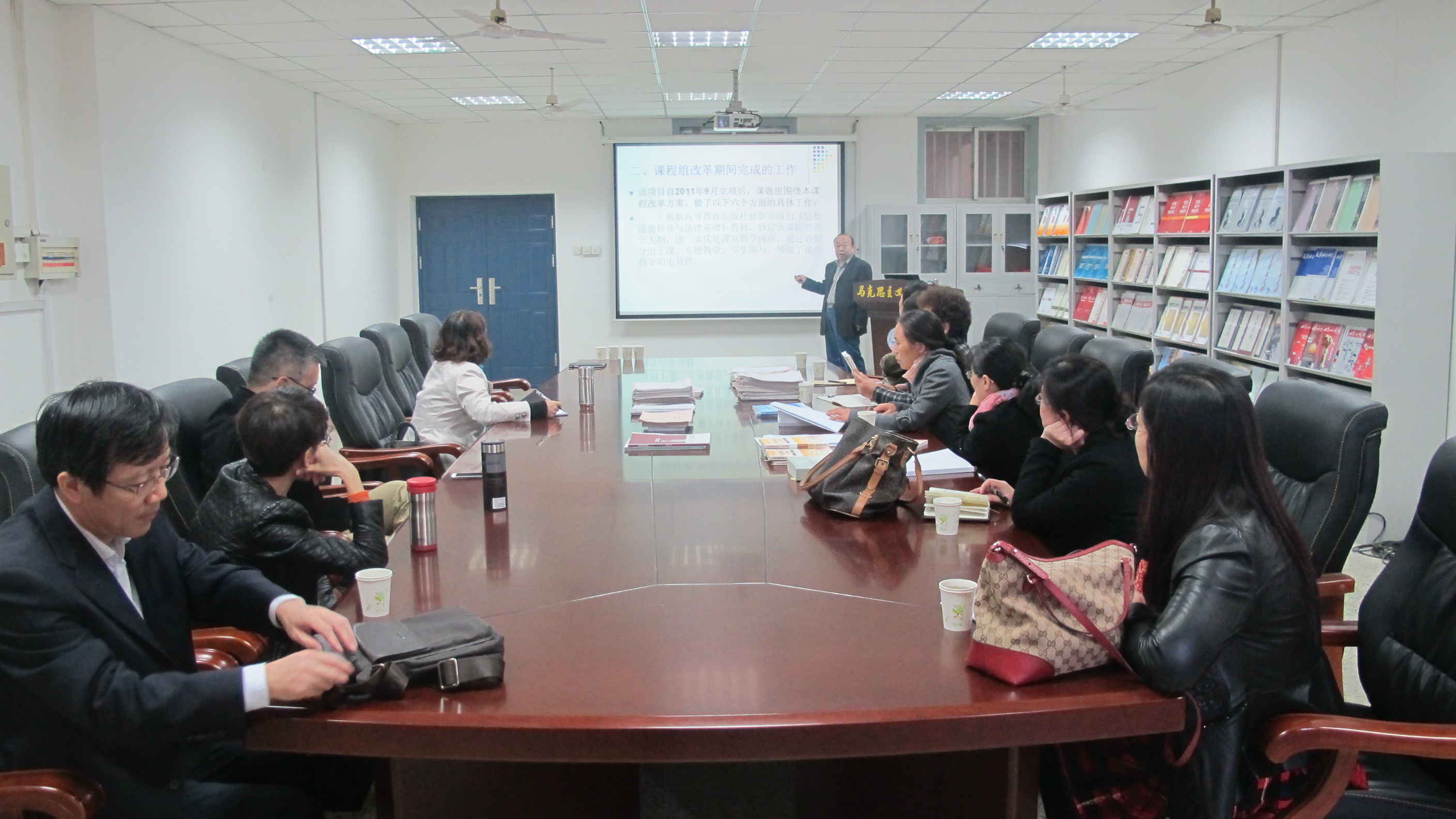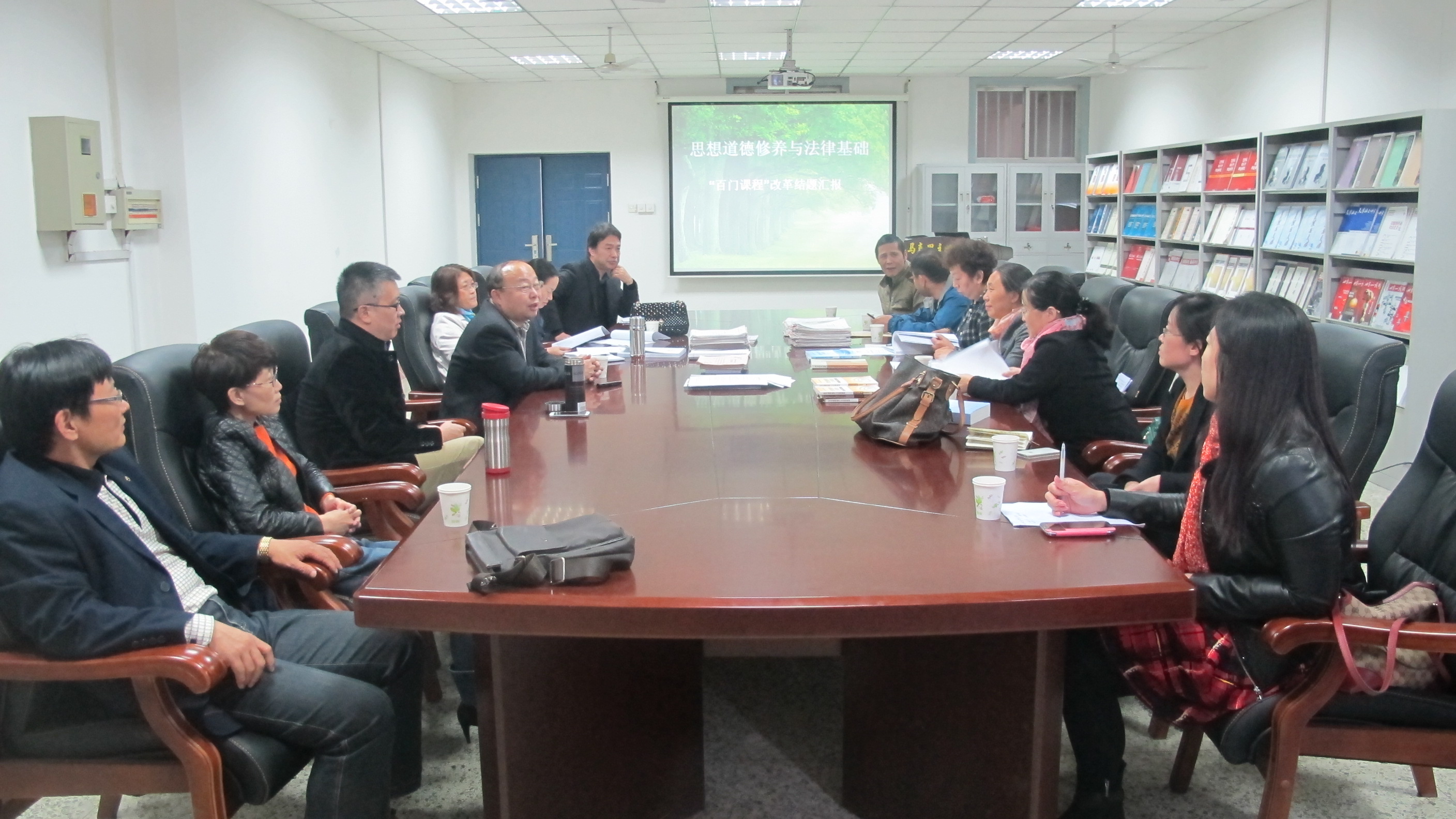 “百门课程改革”主要是为了鼓励全体教师围绕教学方法、教学内容、教学组织等方面进行大胆探索和创新,进行适应新形势下教学需要的改革尝试。“思想道德修养与法律基础”课程组负责人张学忍老师,对课程改革的整体情况进行了精彩的PPT汇报。与会专家在观看了汇报和整个课程组提供的相关支撑材料后,给予了高度的肯定和赞扬。