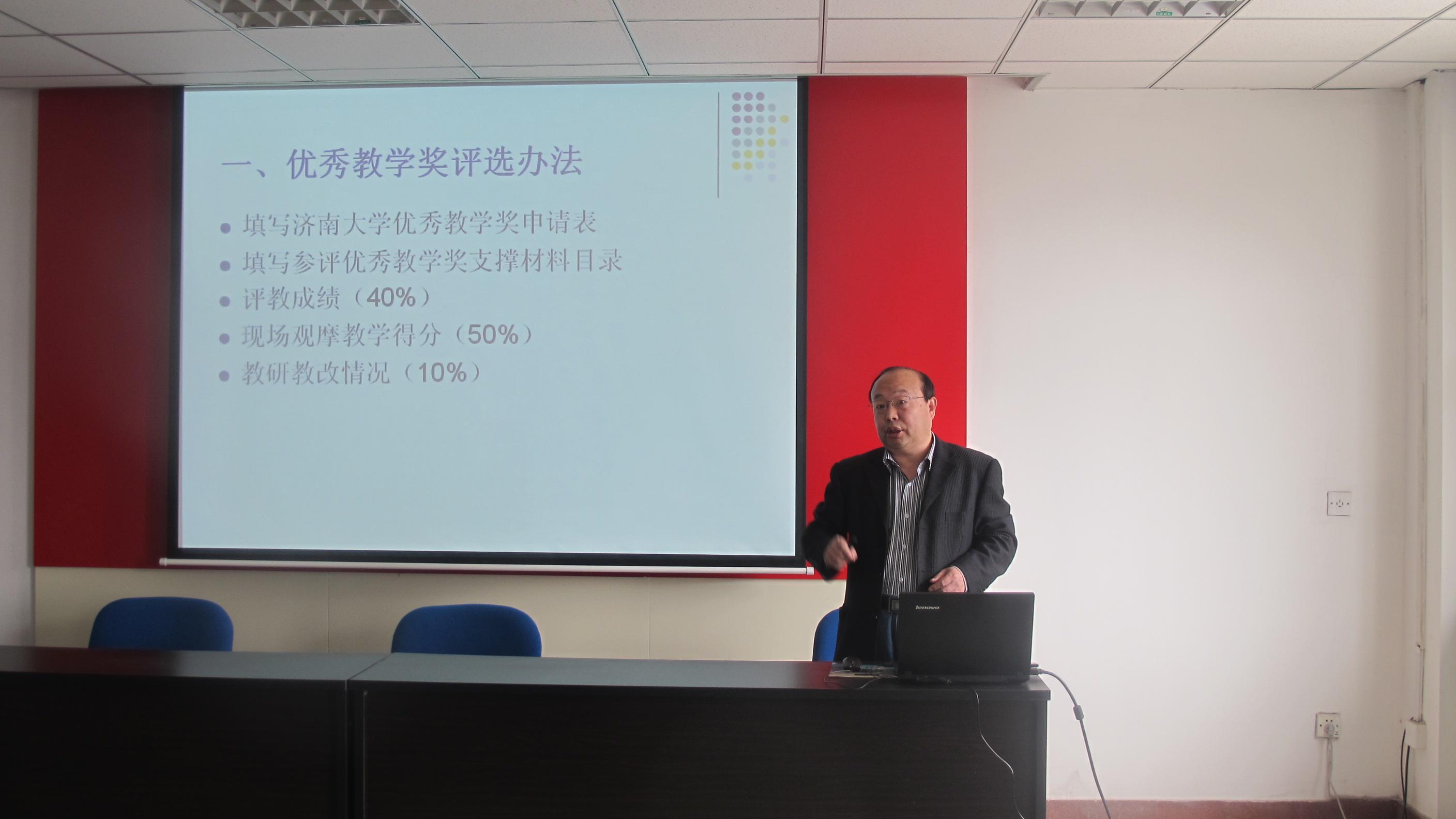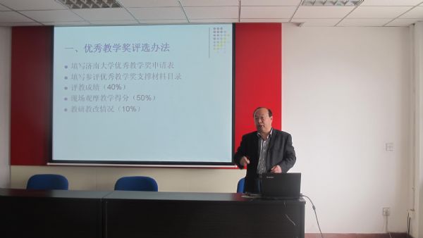 优秀教学奖的评奖办法和自己的获奖体会。张学忍老师谈到,通过这次优秀教学奖申报,深刻体会到作为一名思想政治理论课教师一要爱岗敬业,二要重视教学研究与课程建设,三要熟练掌握教学内容。最后,张学忍老师为全体教师上了一次公开课。