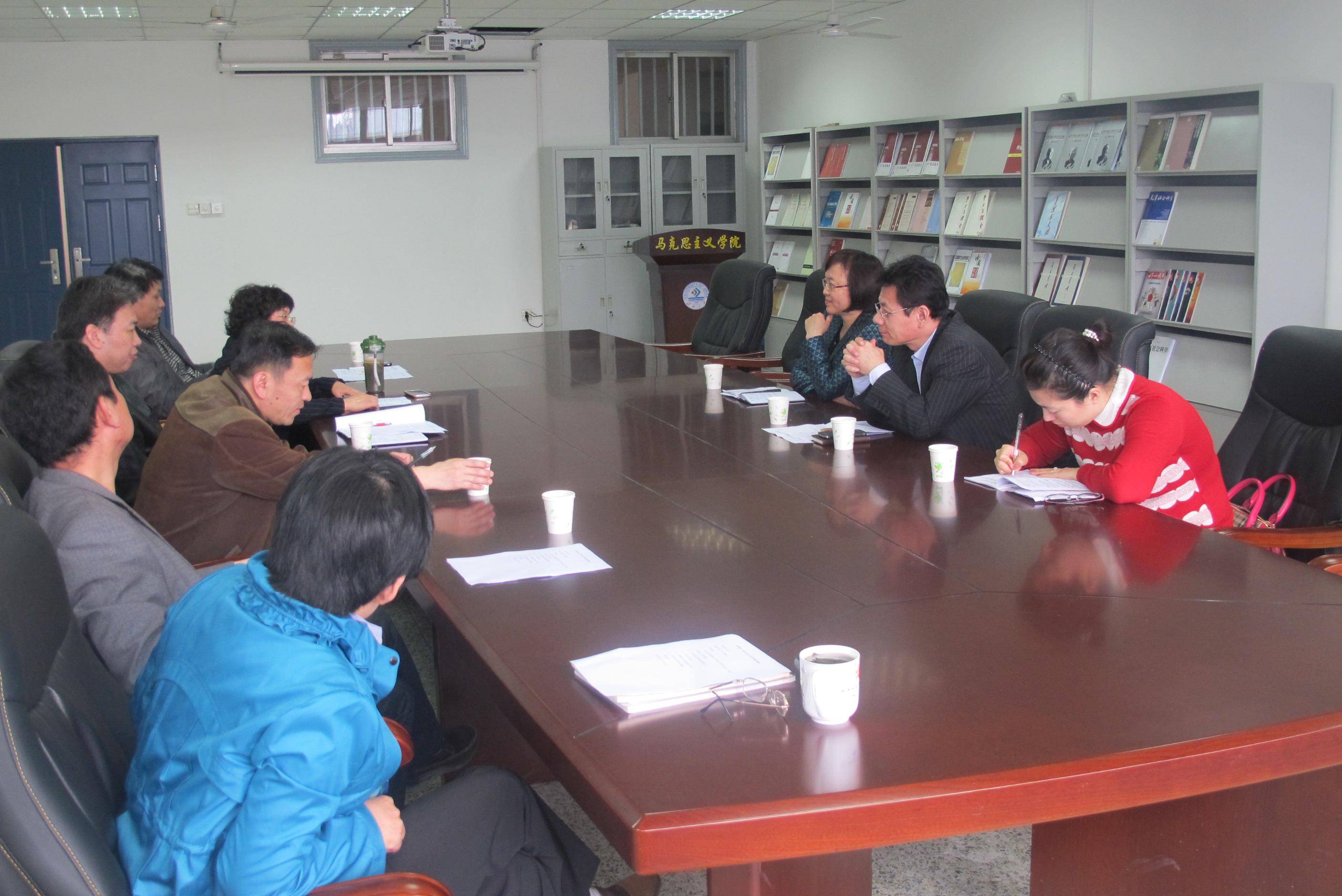 担负的四门思想政治理论课建设等方面的基本情况进行了简要的介绍,汇报了学院下一步工作的目标。参会的骨干教师就学校下一步的学分制改革和成立学院教授委员会等问题与调研组进行了热烈的交流。