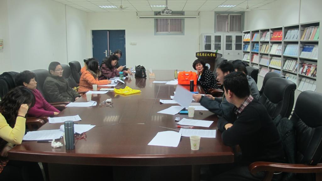 在小会议室召开国家社科基金申报书论证会。院长文洪朝、副院长杨立志、部分教授以及申报教师参加了论证会。