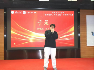 校园“十佳歌手”彭坤演唱《于是》,充分调动了现场氛围。随后选手们依次登台献唱,他们唱腔醇厚且情感饱满,以悠扬旋律诉说心底的炙热情怀,以自信姿态展现马院学子的青春风采,让现场观众在歌声中感受到青春的朝气与力量。